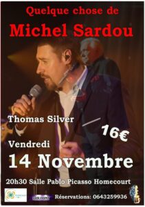 Vendredi 14 novembre – 20h30 Salle Pablo Picasso, Homécourt 16€ l’entrée Les plus grands succès de Michel Sardou Réservations :…
