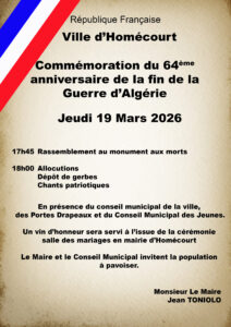 Commémoration du 64ème anniversaire de la fin de la guerre d’Algérie.