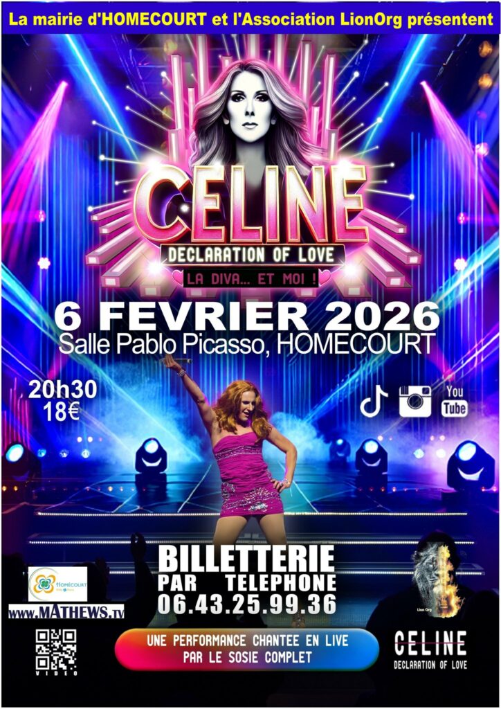 Le Vendredi 6 février 2026, LionOrg, en partenariat avec la Ville d’Homécourt, vous invitent à une performance chantée en live par le sosie de Céline Dion.