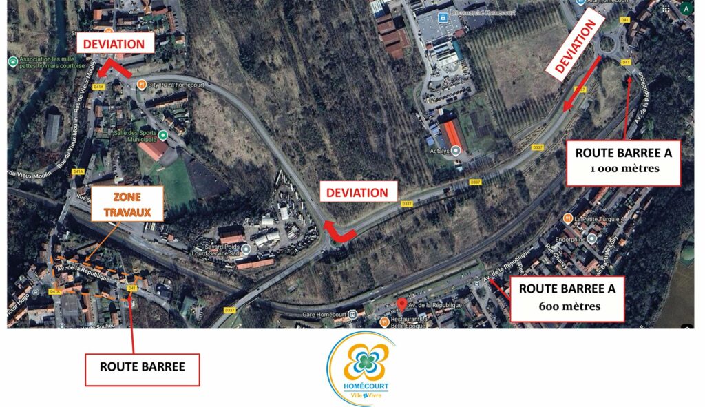 Une déviation sera mise en place dans les sens Jœuf / Auboué, selon le plan ci-dessous.